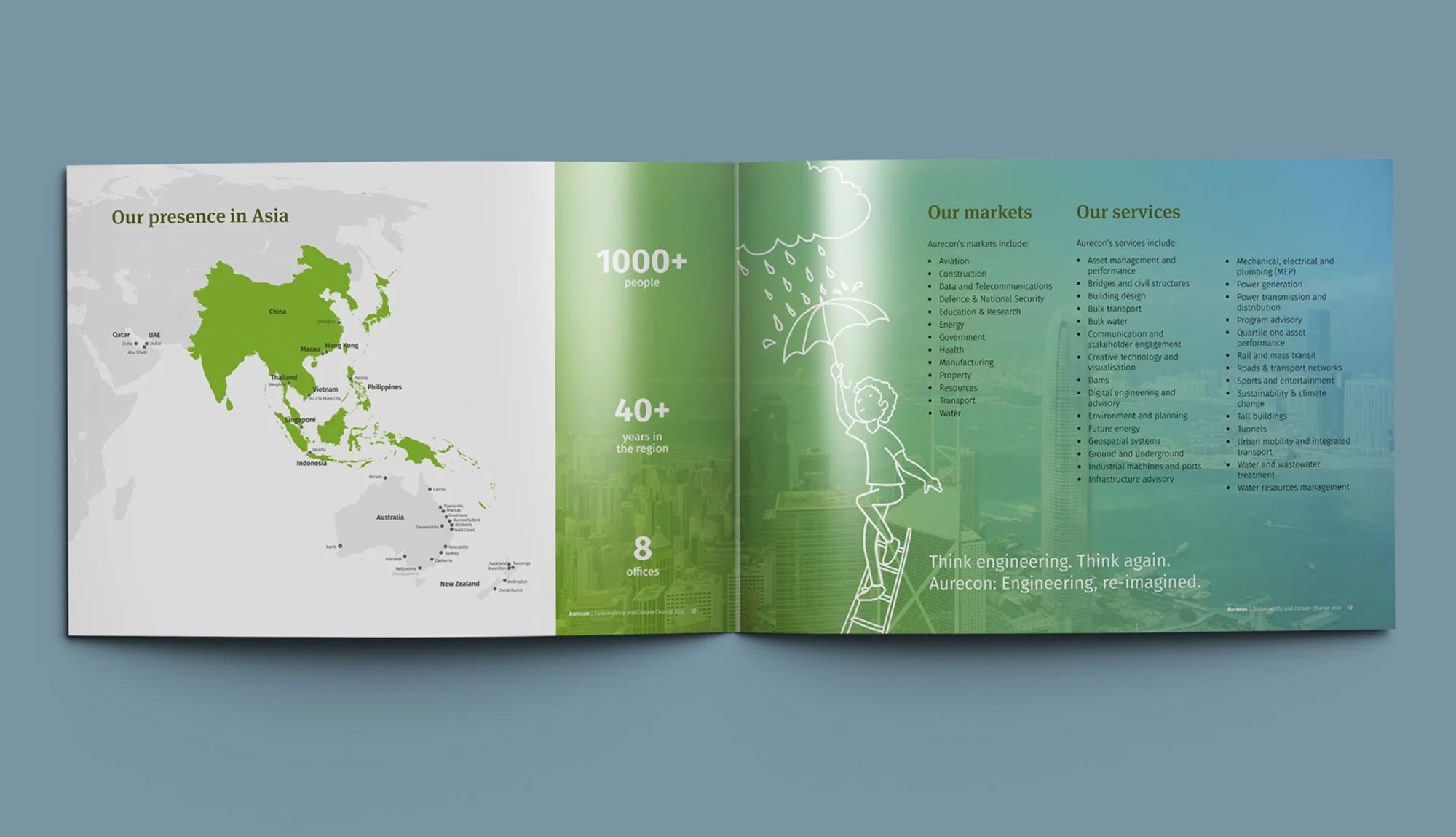 Aurecon are dedicated to using engineering to support and combat the challenges we face with climate change. To this end producing unique, genuine visual messaging around this challenge is a key feature of designing with the business.